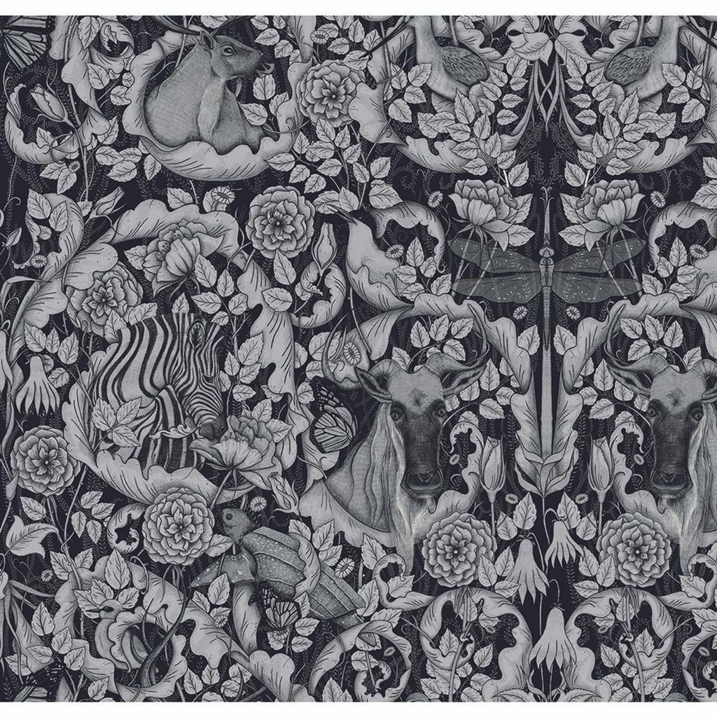 Mono Butterfly & floral 108" backing-black/Gray
